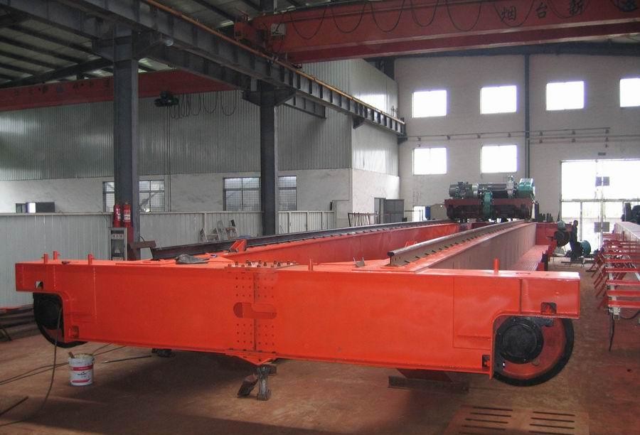 是橋架兩端通過運(yùn)行裝置直接支撐在高架軌道上的橋架型起重機(jī)。它由橋架(包括主梁和端梁)、起重小車、大車運(yùn)行機(jī)構(gòu)和電氣控制系統(tǒng)等部分組成。起重小車上裝有起升機(jī)構(gòu)和小車運(yùn)行機(jī)構(gòu)在橋架主梁上沿小車軌道橫向運(yùn)行;起重機(jī)沿廠房或露天貨場的高架軌道縱向運(yùn)行,其掛梁方向分為與主梁平行和與主梁垂直兩種,并在掛梁下方裝有電磁吸盤,通過電磁吸盤完成物料搬運(yùn)工作。