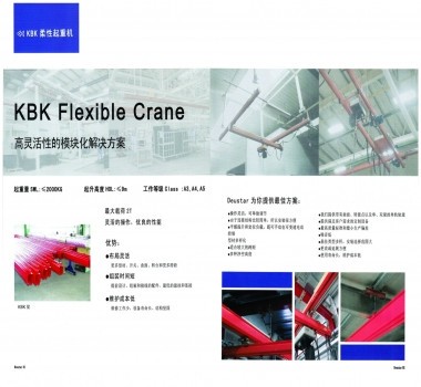 KBK柔性起重機(jī)系統(tǒng)應(yīng)用模塊化設(shè)計(jì)代替?zhèn)鹘y(tǒng)的整機(jī)設(shè)計(jì)概念,將起重機(jī)功能上基本相同的部件制成具有多種用途,有相同聯(lián)接要素和可互換的標(biāo)準(zhǔn)模塊。根據(jù)需要可組成單梁懸掛起重機(jī)、雙梁懸掛起重機(jī)、懸臂起重機(jī)、輕型門式起重機(jī)及堆垛起重機(jī),還能組成大型自動(dòng)化物料搬運(yùn)系統(tǒng),安全起重范圍覆蓋125kg-2000kg。