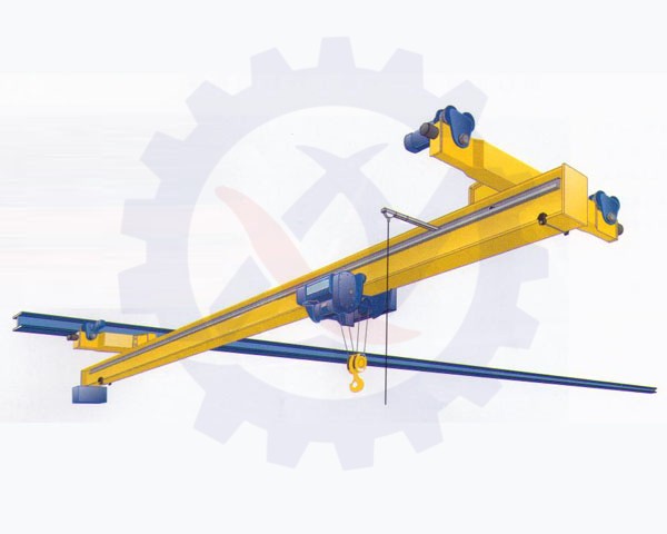 與CD?、MD?型電動(dòng)葫蘆配套使用,構(gòu)成有軌運(yùn)行的單梁起重機(jī)。該懸掛起重機(jī)的運(yùn)行軌道使用用工字鋼,主梁兩端懸掛于工字鋼下方前后運(yùn)行,是小噸位起重設(shè)備。